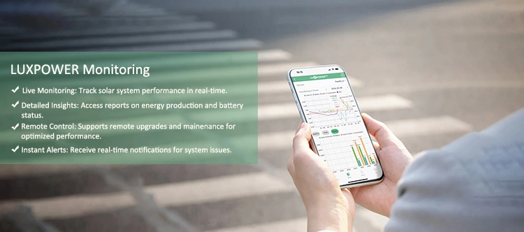 El sistema ofrece una gestión de energía inteligente con monitoreo integral y modos de operación adaptativa, lo que permite a los usuarios optimizar la utilización de energía sin esfuerzo. Diseñado para confiabilidad, Luxpower SNA-US 12000 combina hardware de alto rendimiento con flexibilidad avanzada de la red para admitir la copia de seguridad crítica de la misión y los escenarios fuera de la red.