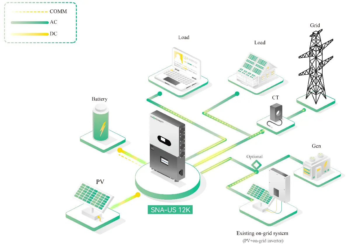 Luxpower SNA-US 12000 es una solución de inversor fuera de la red potente y eficiente diseñada para el mercado de fase dividida.